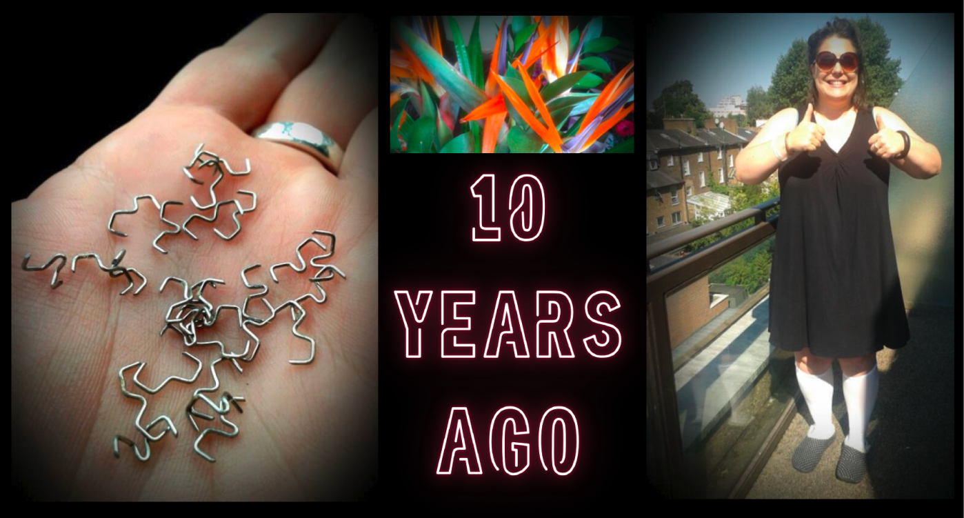 A decade and 880 oestrogen patches since a baked potato sized ovarian tumour and its secondary spread was removed from my abdomen, along with a lot more of my insides.